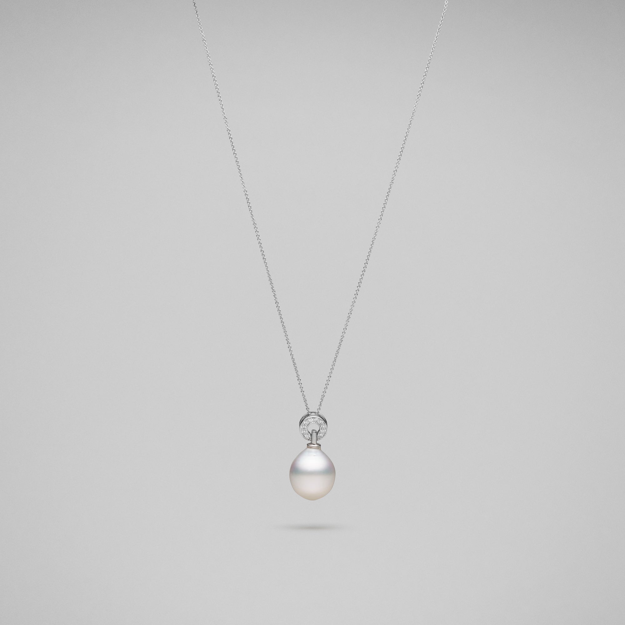A Hollywood South Sea Pearl Pendant, surmounted by diamonds in 18ct white gold. Signed Bunda.