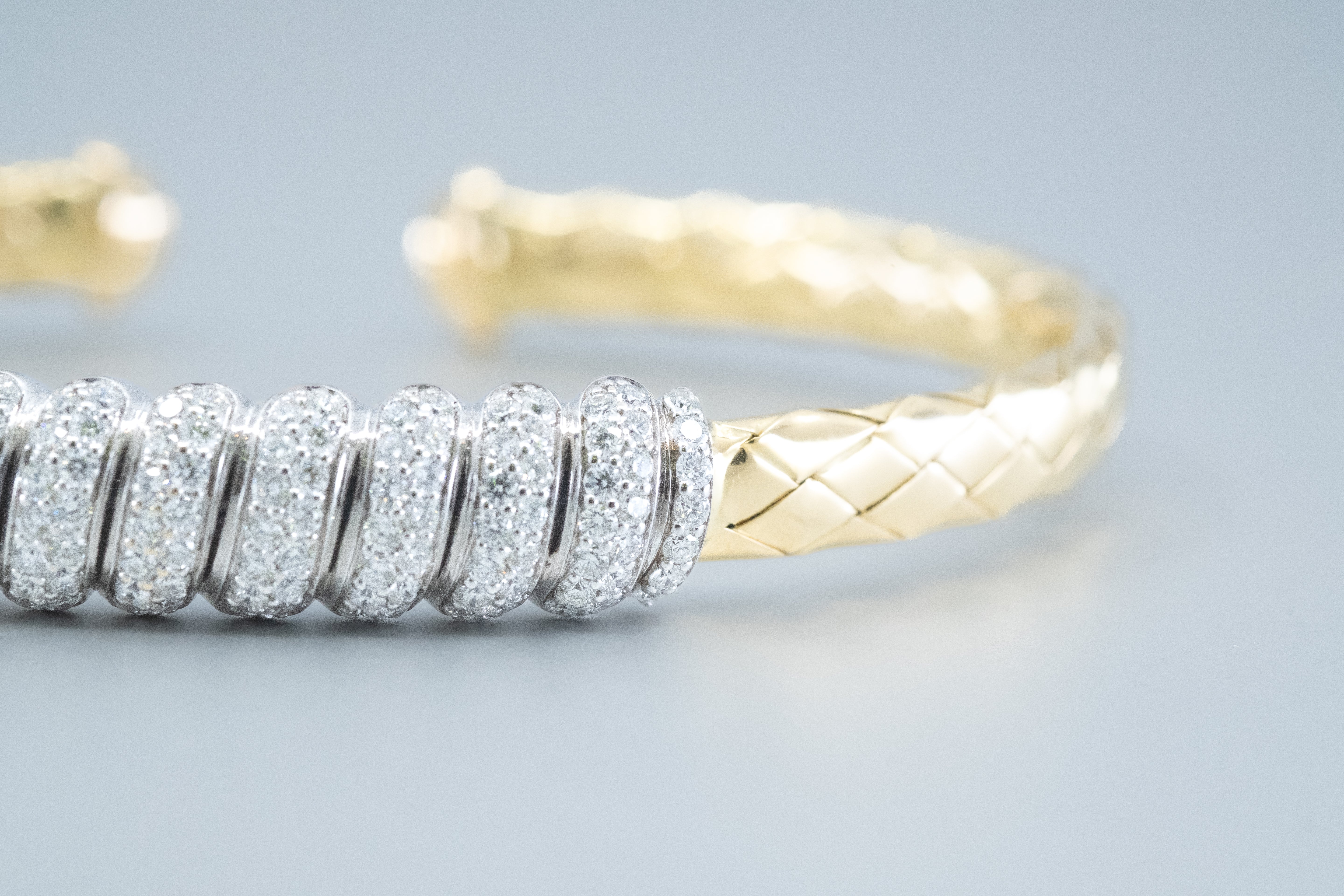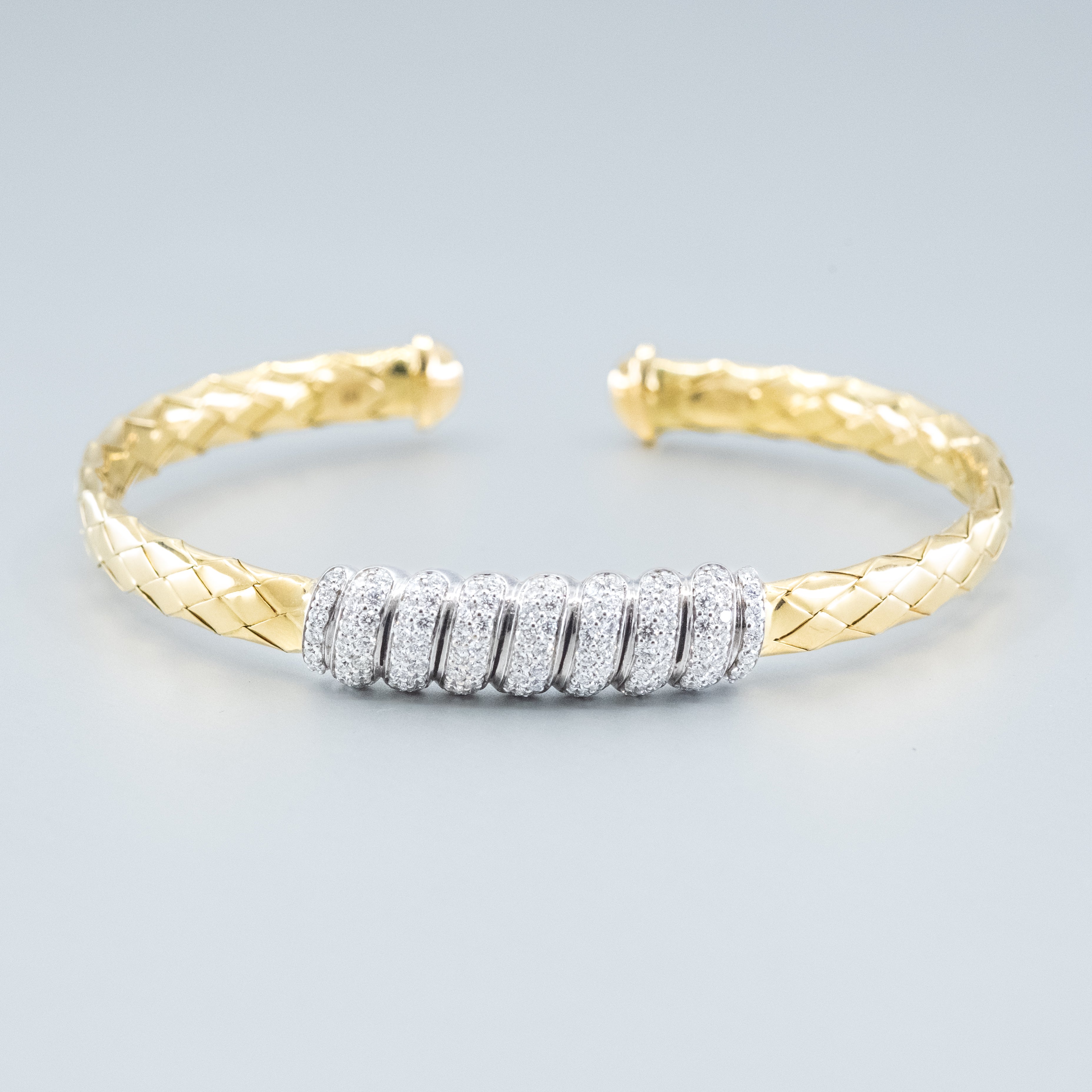 A Bundova diamond bracelet, featuring round brilliant cut diamonds in 18ct white gold, with a braided 18ct yellow gold flexible bracelet.