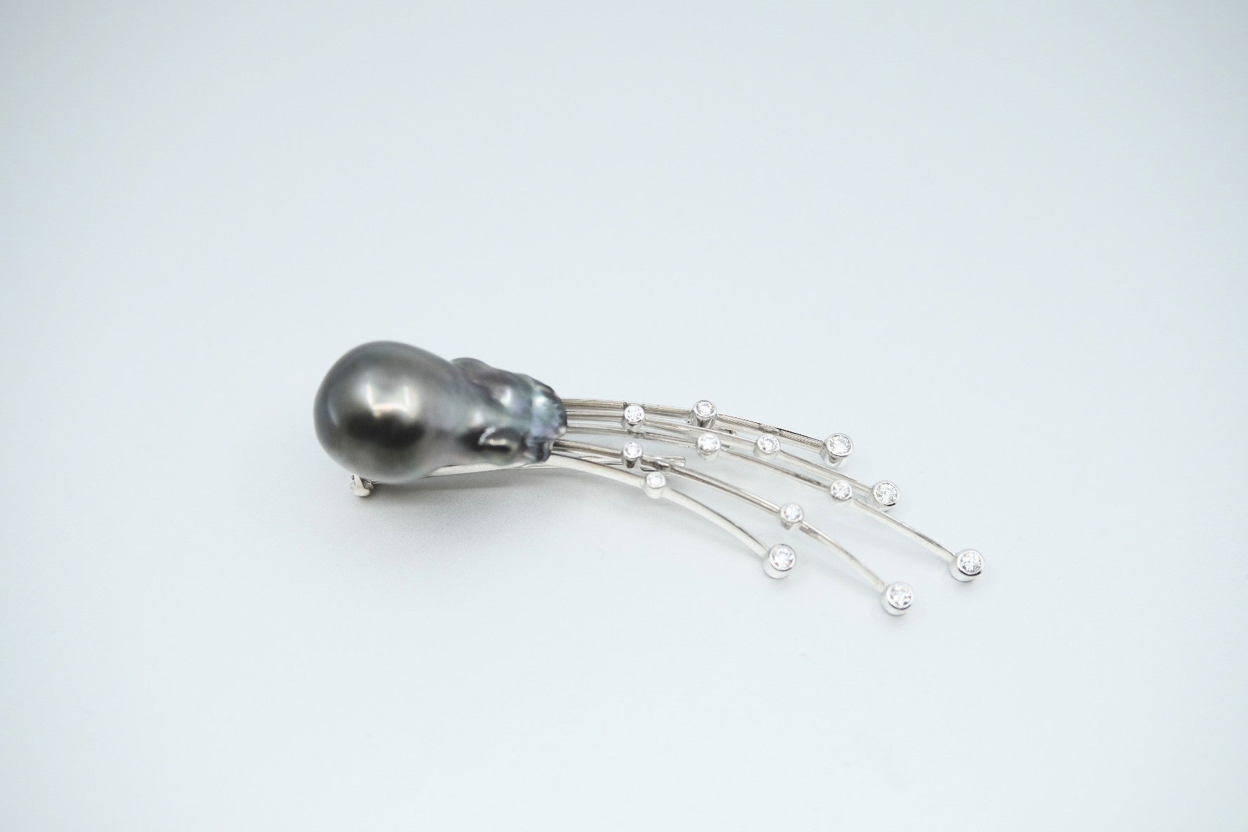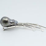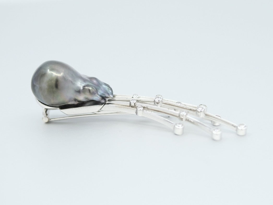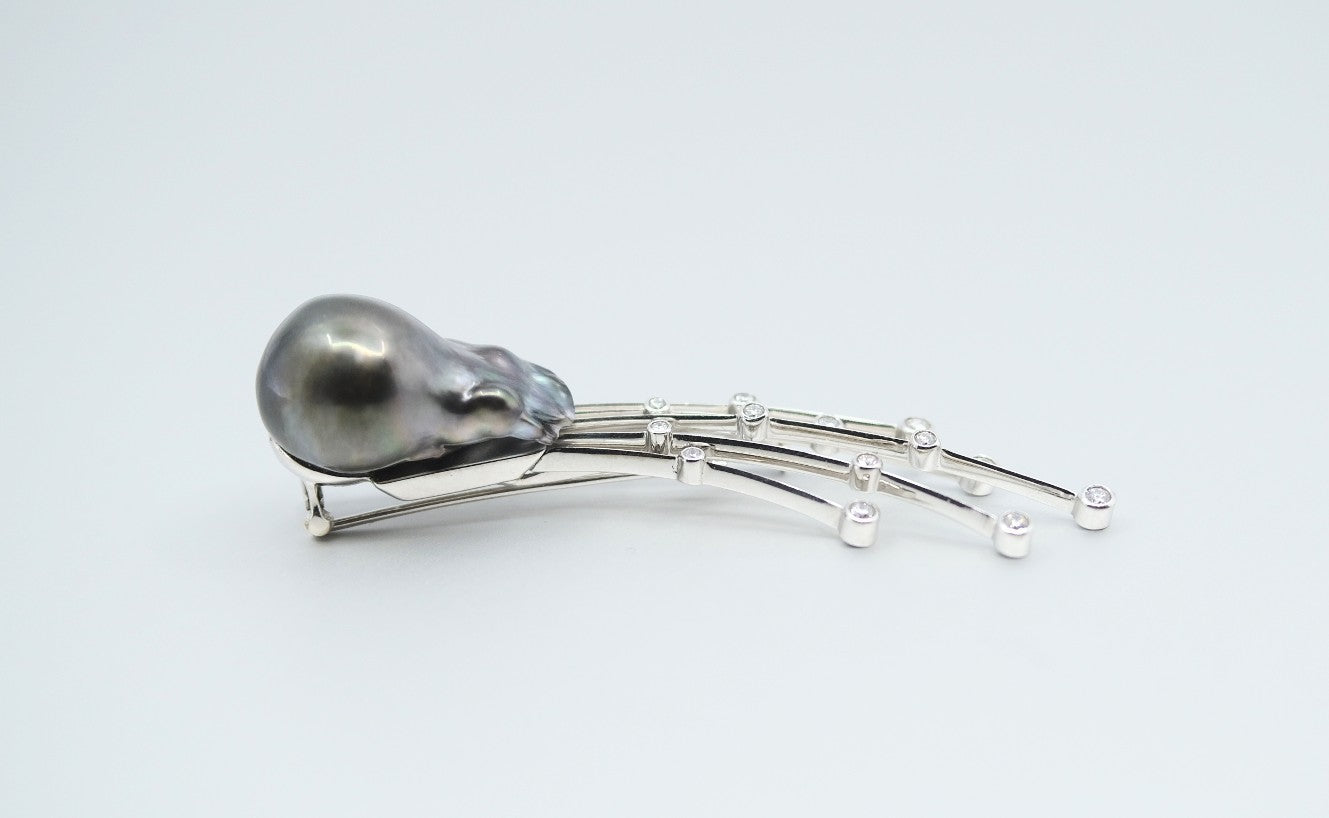 'Meteor' Tahitian Pearl and Diamond Brooch in White Gold