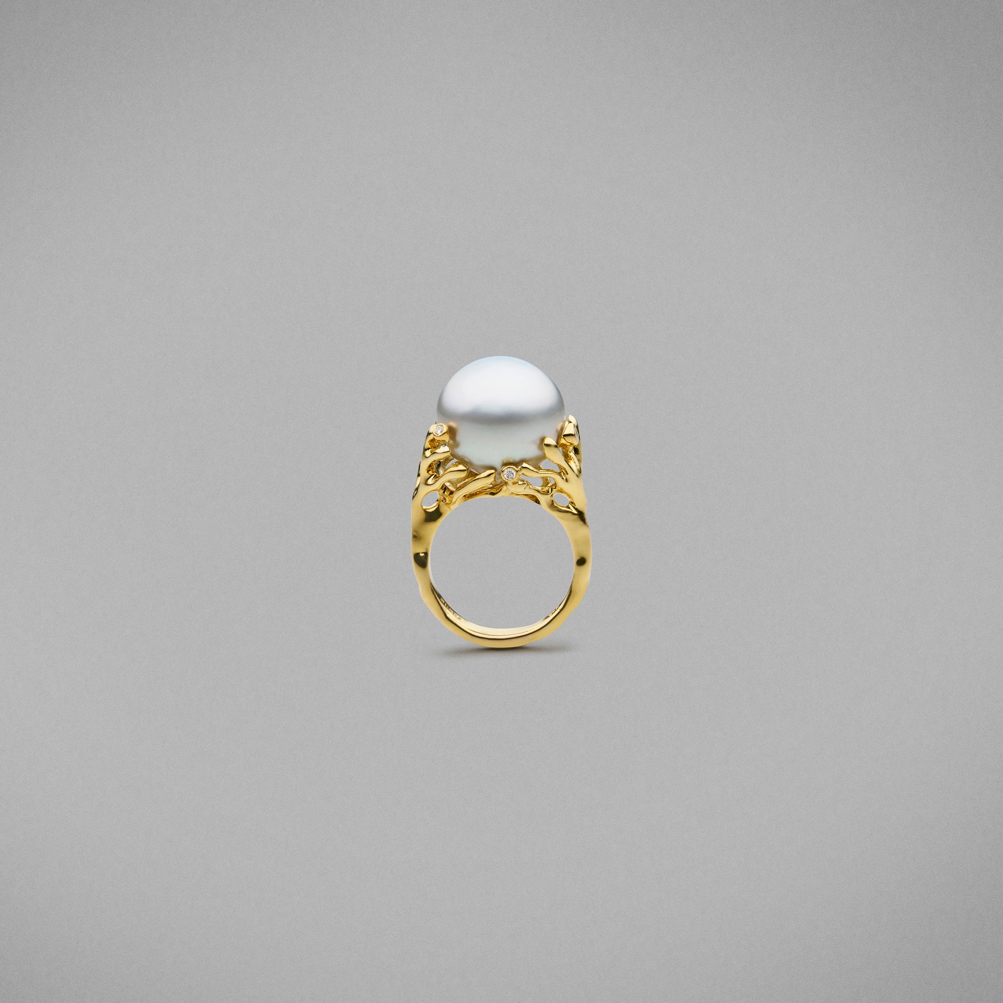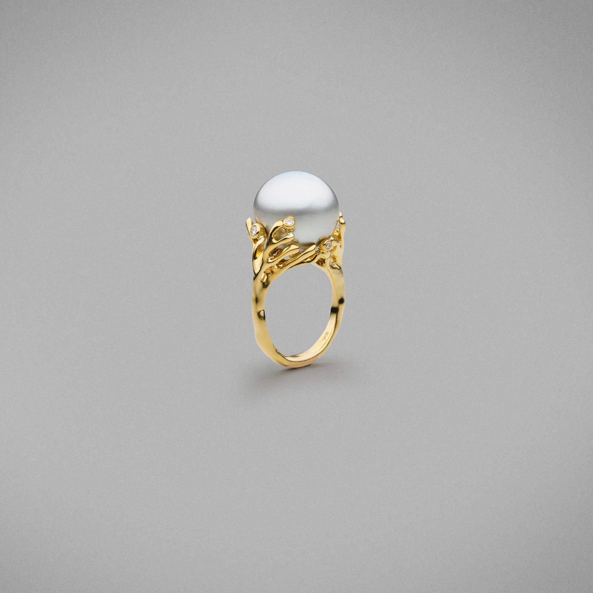 A BUNDA 'Solandra' Pearl ring, in 18ct yellow gold, set with diamonds. Signed BUNDA.