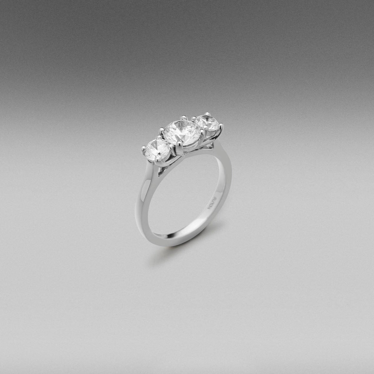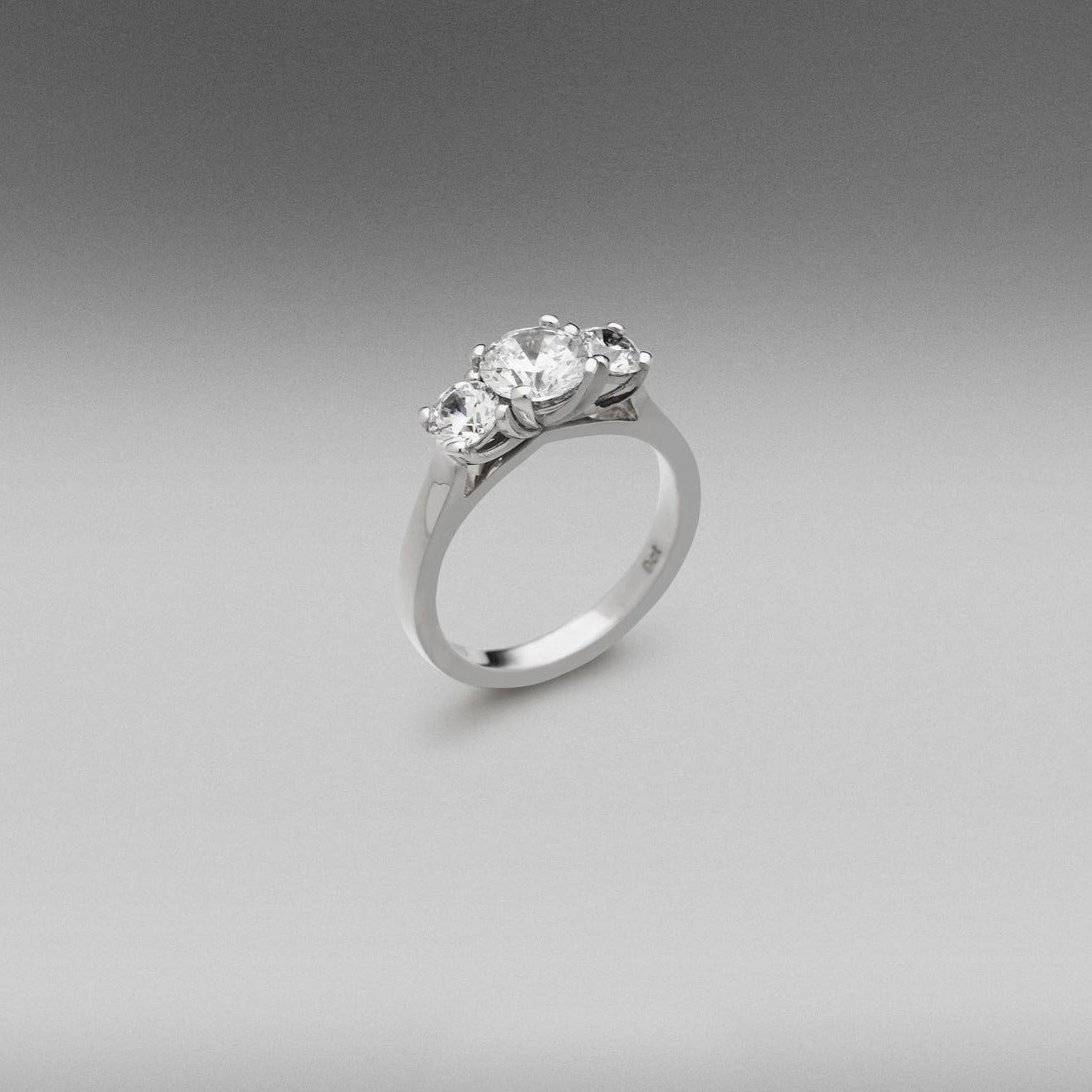 Always stylish our 3 stone 'Tryphena' rings all have tapered claw settings to present the trilogy of diamonds perfectly on top of the finger.