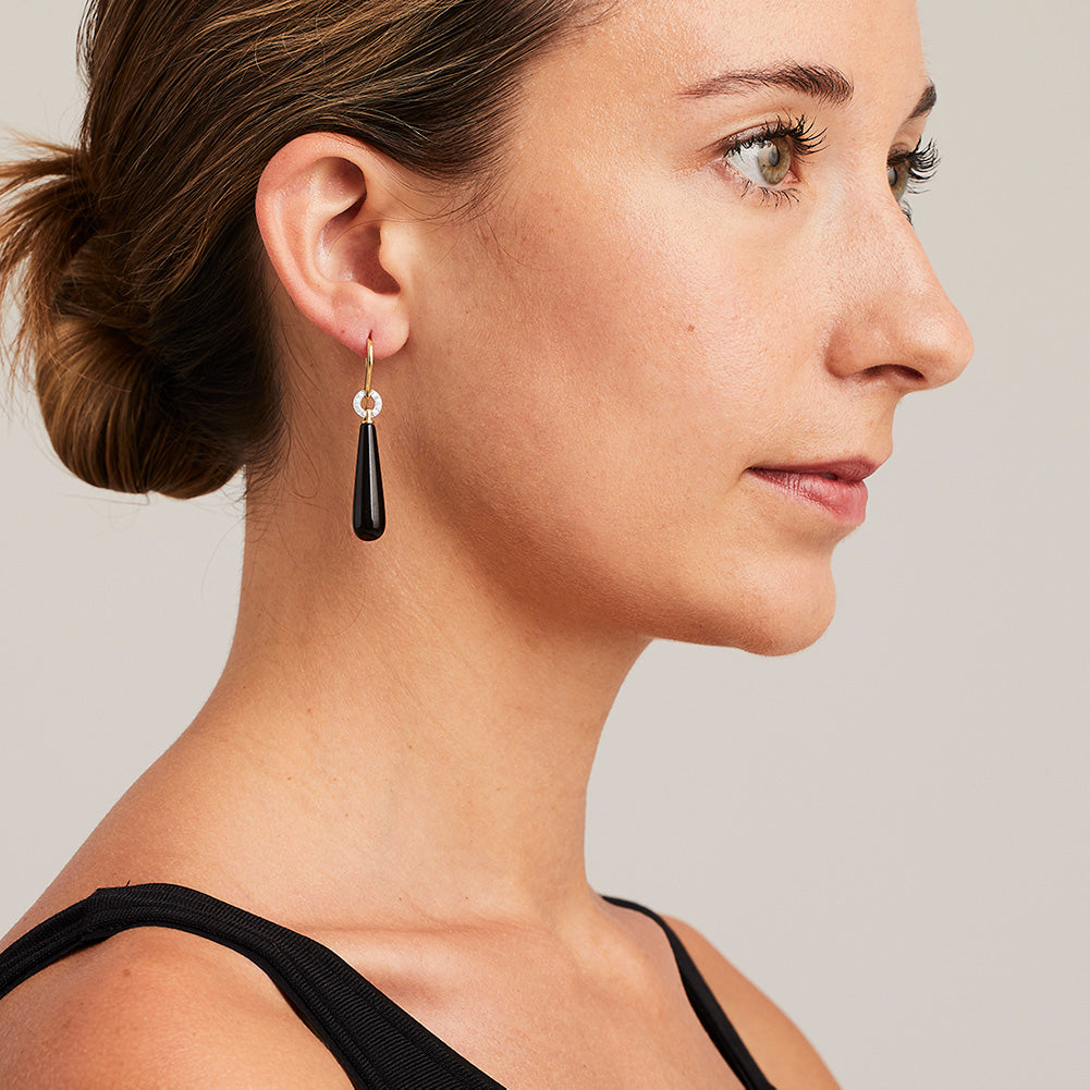'Hollywood' Onyx and Diamond Earrings in Yellow Gold