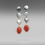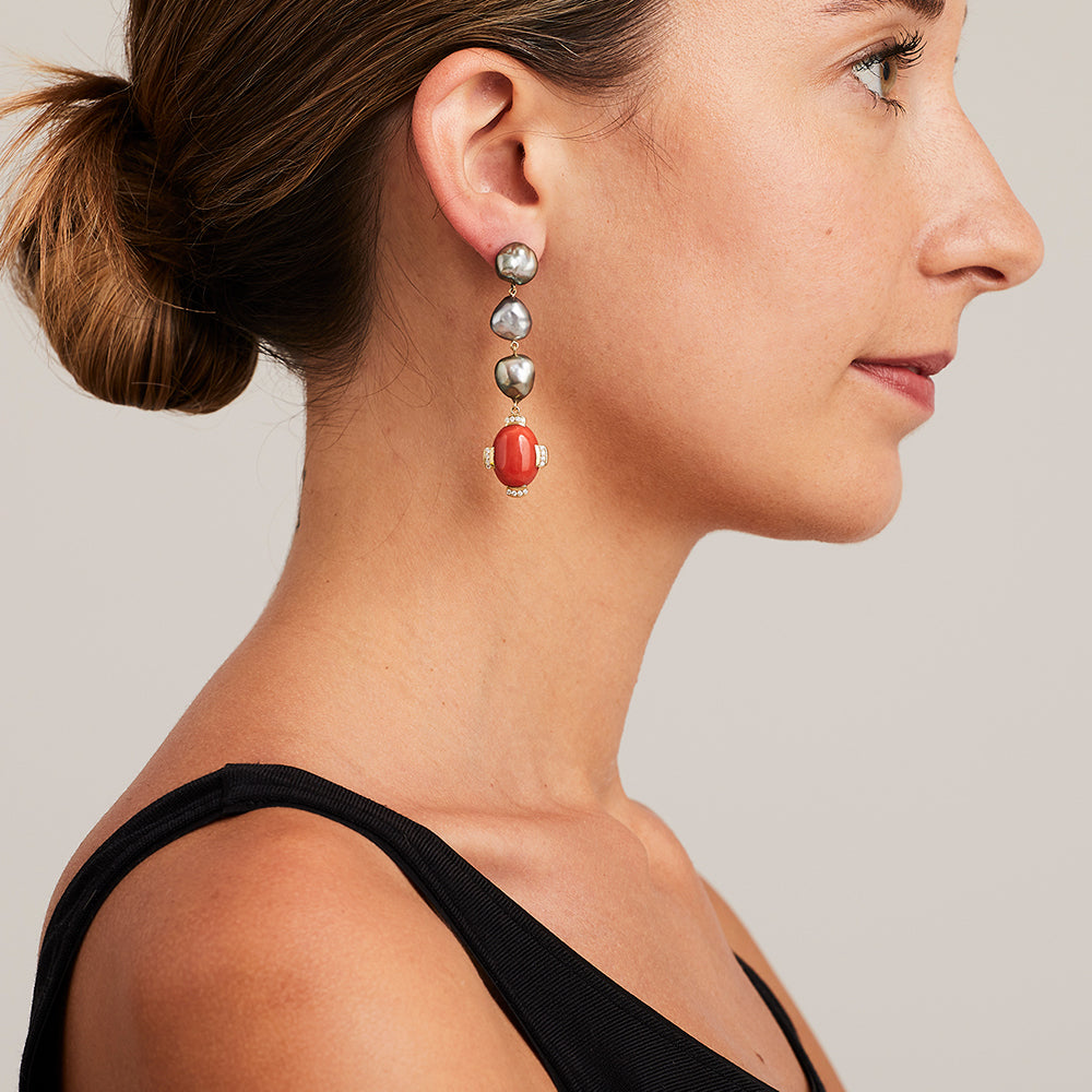 'Krest' Tahitian Keshi Pearl & Precious Coral & Diamond Earrings
