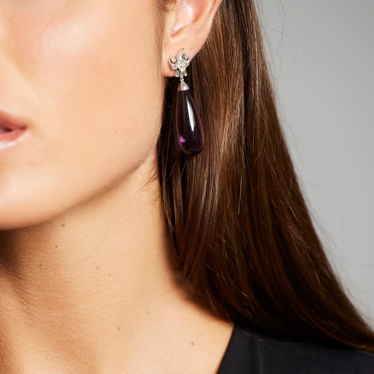 Enquire About the 'Retro' Amethyst and Diamond Earrings