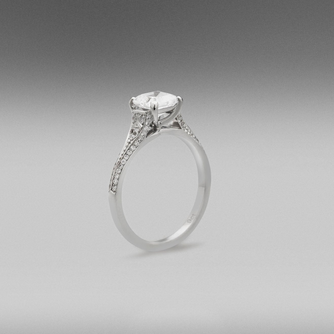 Art Deco vintage glamour is personified in our 'Tanara' diamond engagement rings with exquisite diamond setting detail in the shank.