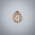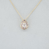 A BUNDA 'Sitara' diamond pendant made in 18 carat yellow gold, featuring a four claw set, pear cut pink diamond, surrounded with threadset, pink diamonds to the head.