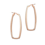 A contemporary hoop earring that is long and gently squared at the bottom for a more edgey look. Light to wear.