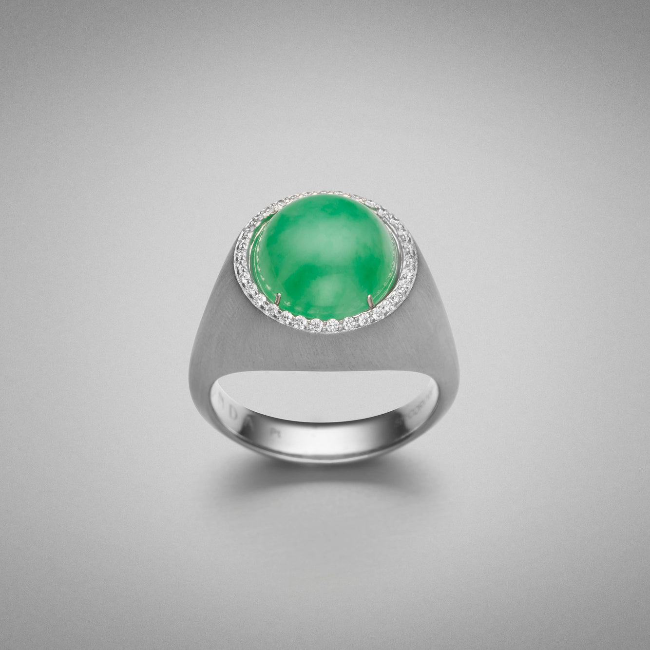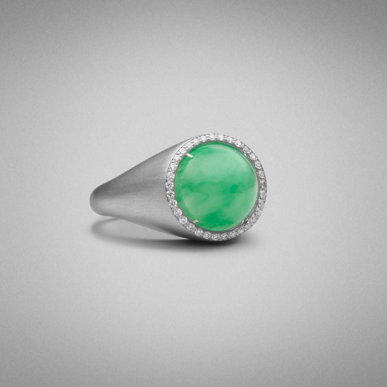 Enquire About the 'Corvus' Jade and Diamond platinum Ring