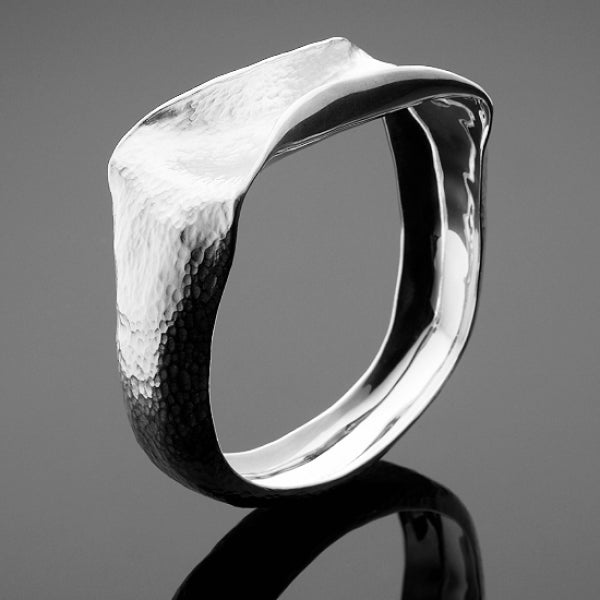 A BUNDA silver bangle, polished interior with a matt finish. Diameter 6.7cm. Weight 83.45 grams.