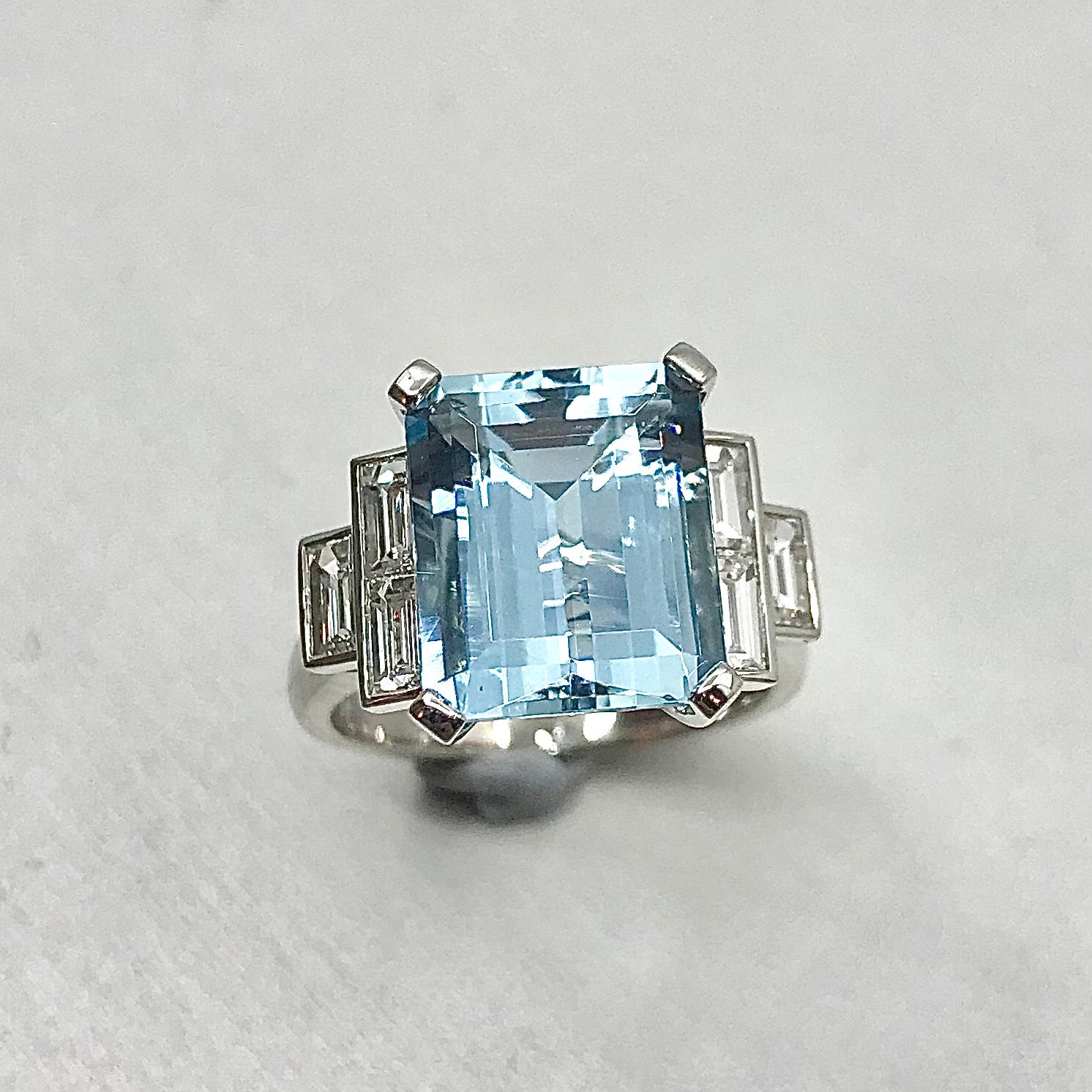 Characteristics of Emerald cut Aquamarine; = 5.72ct.