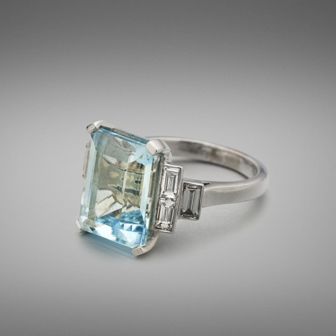 A BUNDA 'Volans' Aquamarine Ring set in Platinum, Size M1/2. Signed BUNDA.