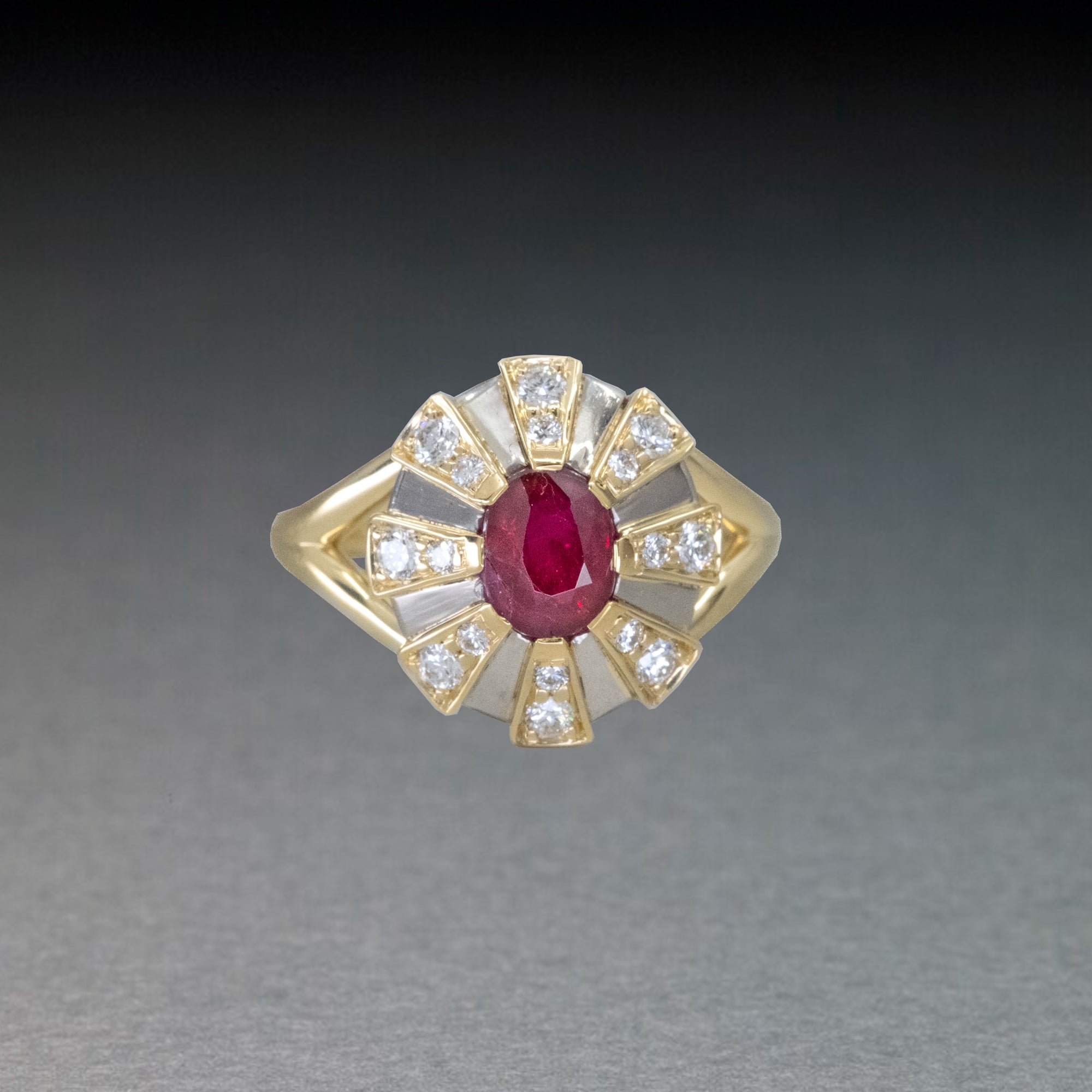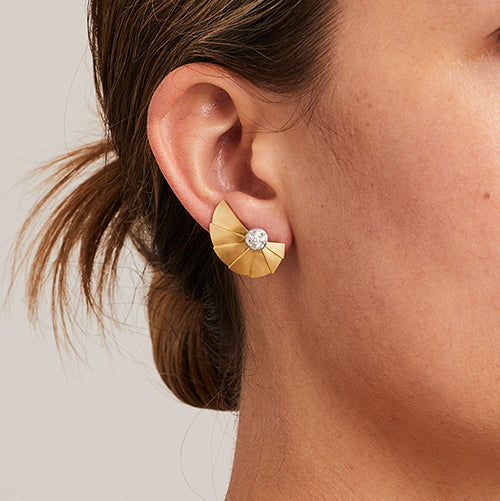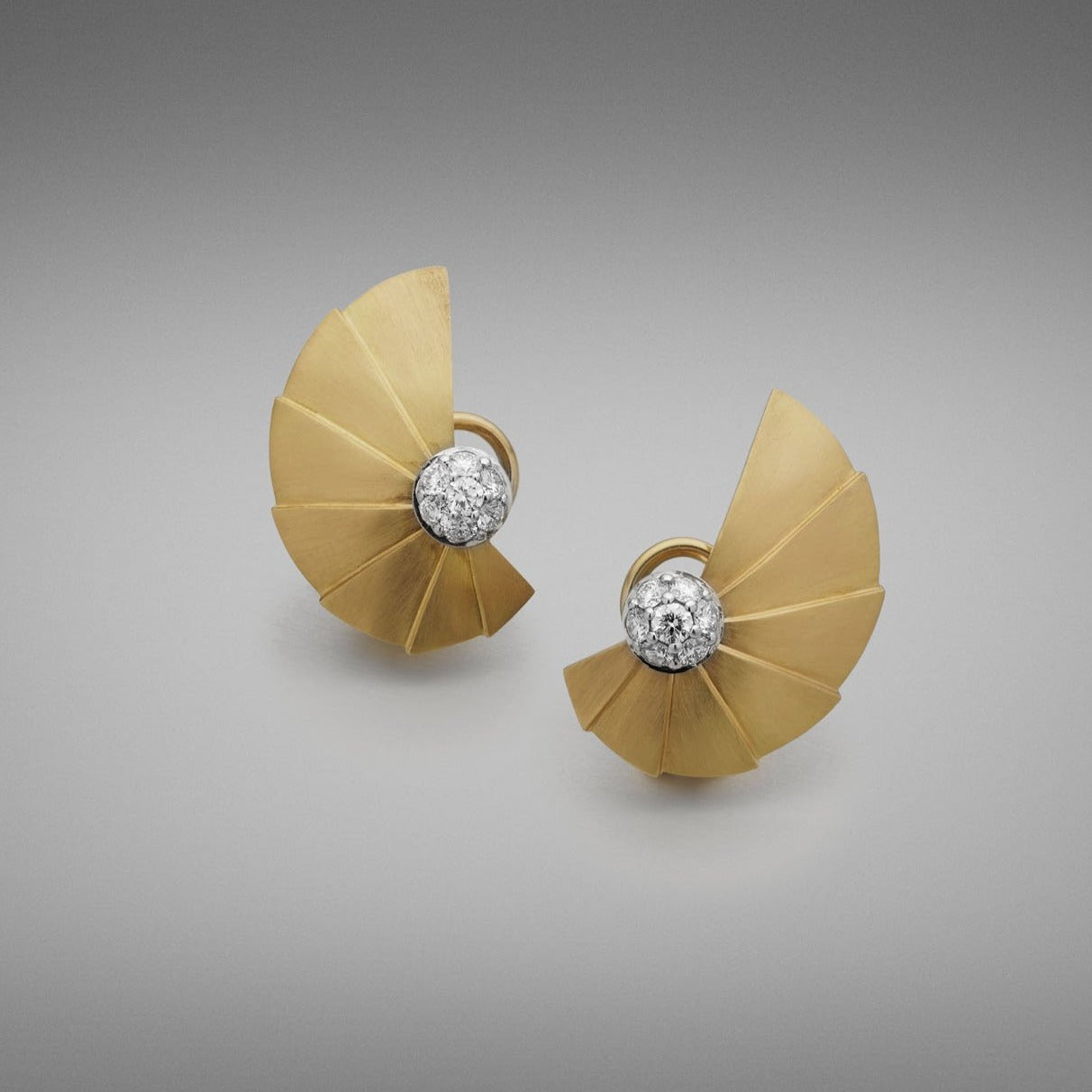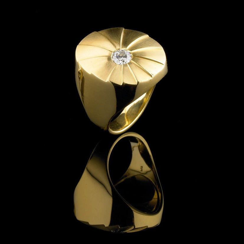 The 'Apus' collection is as resplendent as the constallation in the southern hemisphere after which it was named. It features fan like segments that create a spiralling, circular effect which are accented with either a single diamond or rows of pave.